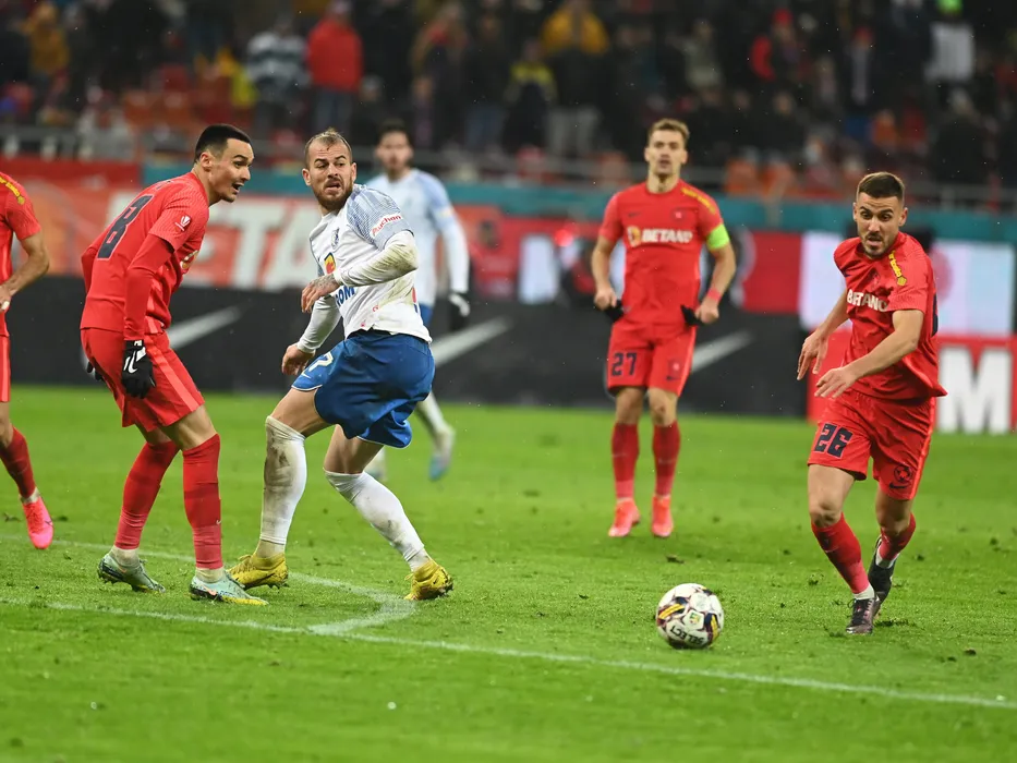 Adrian Gheorghe Sut, Denis Alibec si Razvan Constantin Oaida in meciul de fotbal dintre FCSB si Farul Constanta, contand pentru Superliga Superbet, desfasurat pe Arena Nationala din Bucuresti, duminica 29 ianuarie 2023. © FOTO:Razvan Pasarica/SPORT PICTURES