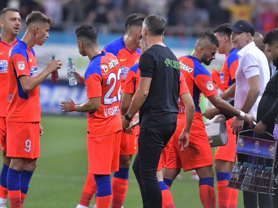 Edward Iordanescu alaturi de Octavian George Popescu si Valentin Cretu la o pauza de hidratare in meciul de fotbal dintre FCSB si Dinamo Bucuresti, contand pentru Liga 1 Casa Pariurilor, desfasurat pe Arena Nationala din Bucuresti, duminica 12 septembrie 2021. © FOTO:Razvan Pasarica/SPORT PICTURES