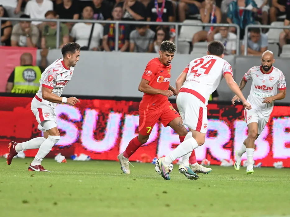 Daniel Gago Iglesias, Florinel Teodor Coman si Gabriel Rodrigues De Moura in meciul de fotbal dintre FCSB si Dinamo Bucuresti, din cadrul Superligii Superbet, desfasurat pe Stadionul National Arcul de Triumf din Bucuresti, sambata 22 iulie 2023. © FOTO:Razvan Pasarica/SPORT PICTURES