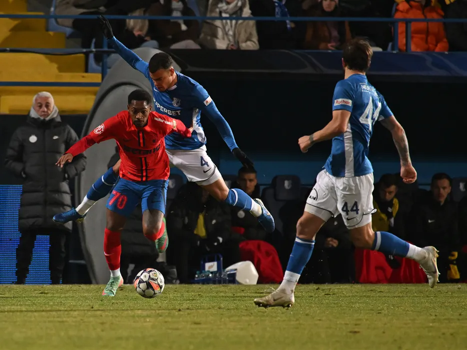 Luis Phelipe De Souza Figueiredo si Gustavo Henrique Marins Silva in meciul de fotbal dintre Farul Constanta si FCSB, contand pentru Superliga Superbet, desfasurat pe Stadionul central al Academiei Gheorghe Hagi din Ovidiu, duminica 15 decembrie 2024. © FOTO:Razvan Pasarica/SPORT PICTURES