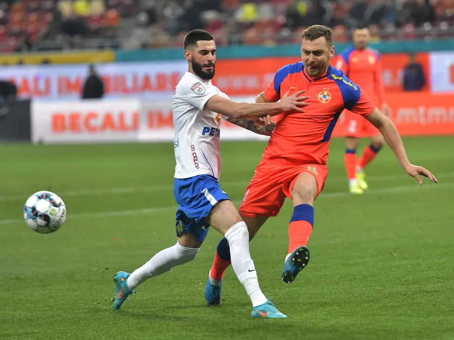 Radu Stefanita Boboc si Andrei George Miron in meciul de fotbal dintre FCSB si Farul Constanta, contand pentru Play-off-ul Ligii 1 Casa Pariurilor, desfasurat pe Arena Nationala din Bucuresti, luni 14 martie 2022. © FOTO:Razvan Pasarica/SPORT PICTURES