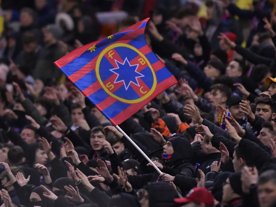 Steag rosu albastru in peluza stelista la meciul de fotbal dintre FCSB si Farul Constanta, contand pentru Liga 1 Casa Pariurilor, desfasurat pe Arena Nationala din Bucuresti, duminica 27 februarie 2022. © FOTO:Razvan Pasarica/SPORT PICTURES