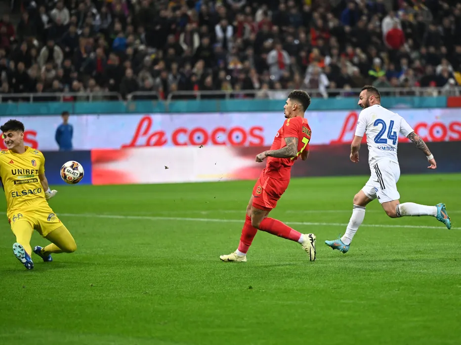 Florinel Teodor Coman marchează un gol de lângă Radoslav Bonchev Dimitrov in poarta lui Răzvan Cristian Ducan în meciul de fotbal dintre FCSB si FC Botosani, contând pentru Superliga Superbet, desfășurat pe Arena Nationala din Bucuresti, duminica 25 februarie 2024. © FOTO: Răzvan PĂSĂRICĂ/SPORT PICTURES