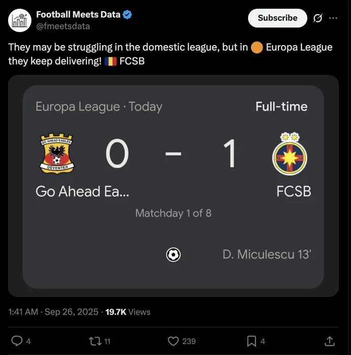 FCSB i-a luat locul lui Rangers, în Europa League! Cum a fost posibil, după victoria cu Go Ahead Eagles