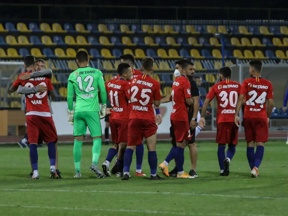 Bucurie stelista cu Olimpiu Vasile Morutan si Valentin Cretu dupa meciul de fotbal dintre Backa Topola si FCSB, contand pentru Liga Europa, desfasurat fara spectatori pe Stadionul Gradski Senta din Senta, joi 17 septembrie 2020. © FOTO:Ciprian Petcut/SPORT PICTURES