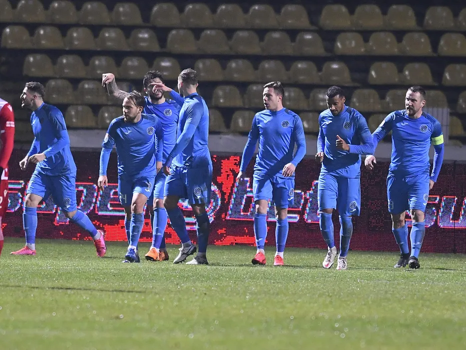 Bucurie a fotbalistilor din Clinceni dupa un gol marcat cu Juan Bautista Cascini, Ionut Petrisor Petrescu, Georgi Velikov Pashov si Razvan Bogdan Patriche Nichita in meciul de fotbal dintre Academica Clinceni si Dinamo Bucuresti, contand pentru Liga 1 Casa Pariurilor, desfasurat pe Stadionul Municipal Ion Comsa din Calarasi, duminica 20 decembrie 2020. © FOTO:Razvan Pasarica/SPORT PICTURES