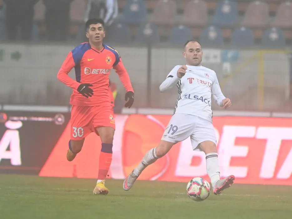 Marian Alexandru Musi si Andrei Alexandru Patache in meciul de fotbal dintre FC Botosani si FCSB, contand pentru Cupa Romaniei Betano, desfasurat pe Stadionul Municipal din Botosani, luni 8 decembrie 2022. © FOTO:Razvan Pasarica/SPORT PICTURES