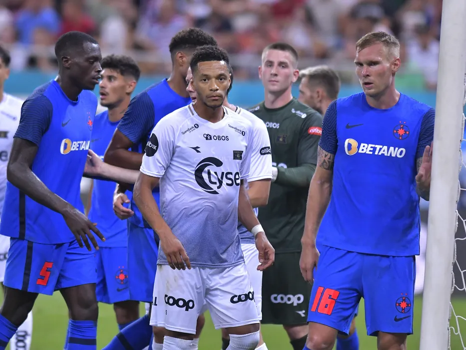 Joyskim Aurelien Dawa Tchakonte, Kevin Aleksander Kabran si Joonas Tamm in meciul de fotbal dintre FCSB si FK Viking Stavanger, din cadrul play-off-ului UEFA Europa Conference League, desfasurat pe Arena Nationala din Bucuresti, joi 18 august 2022. © FOTO:Razvan Pasarica/SPORT PICTURES