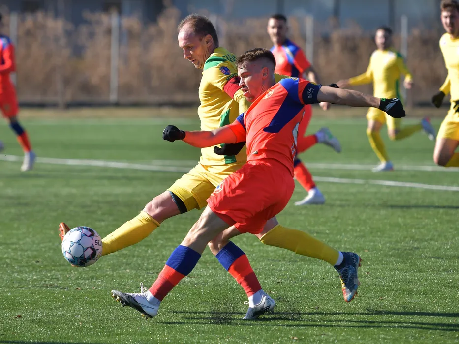 Manuel Adrian Scarlatache si Darius Dumitru Olaru in meciul amical de fotbal dintre FCSB si CS Mioveni, desfasurat la Centrul National de Fotbal de la Buftea, sambata 15 ianuarie 2022. © FOTO:Razvan Pasarica/SPORT PICTURES