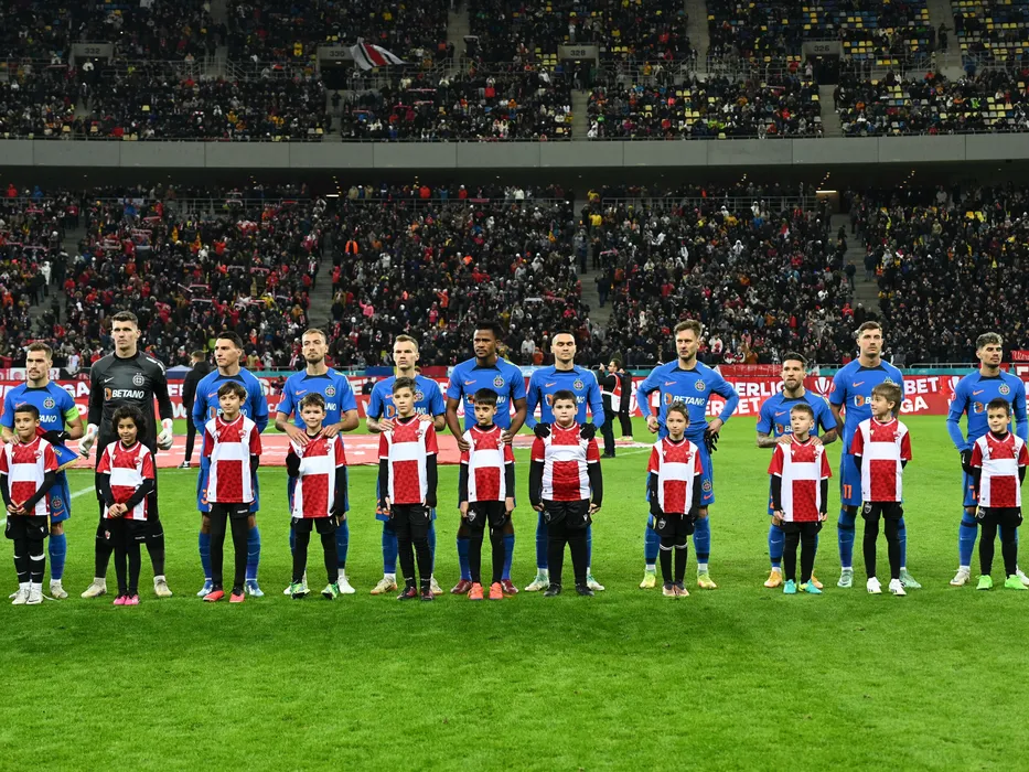 Fotbalistii stelisti la startul meciului de fotbal dintre Dinamo Bucuresti si FCSB, din cadrul Superligii Superbet, desfasurat pe Arena Nationala din Bucuresti, duminica 26 noiembrie 2023. © FOTO:Razvan Pasarica/SPORT PICTURES