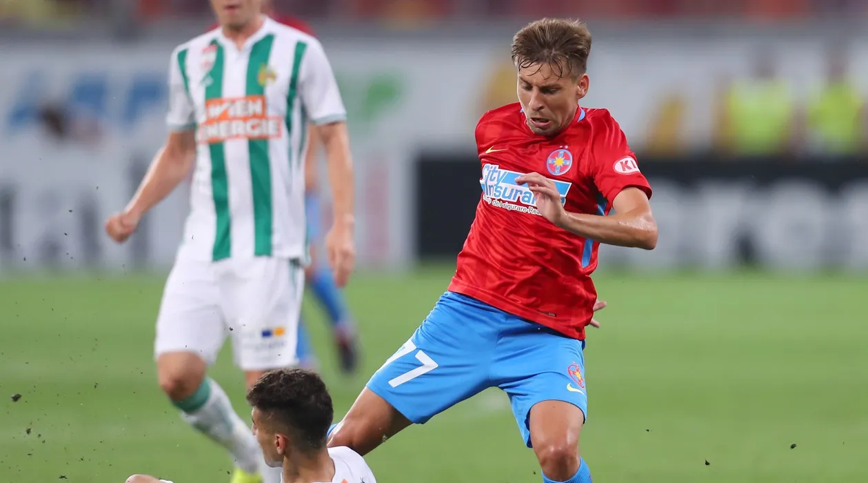 Alexandru Stan (D) in meciul de fotbal dintre FCSB si Rapid Viena, din mansa retur a play-off-ului Ligii Europa, disputat pe Arena Nationala din Bucuresti, joi, 30 august 2018. © FOTO: Stefan Constantin /SPORT PICTURES