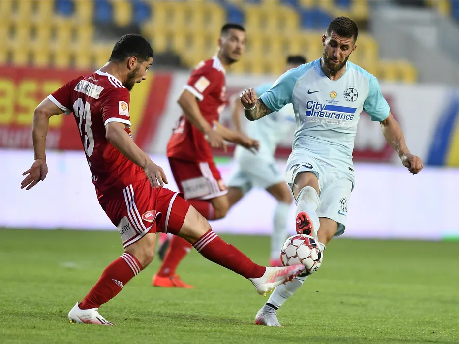 Anass Achahbar si Ovidiu Popescu in meciul de fotbal dintre FCSB si Sepsi OSK Sfantu Gheorghe, finala Cupei Romaniei, disputat fara spectatori pe Stadionul Ilie Oana din Ploiesti, miercuri 22 iulie 2020. © FOTO:Razvan Pasarica/SPORT PICTURES