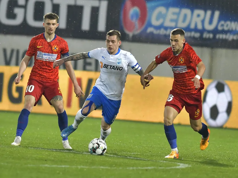 Florin Lucian Tanase, Dan Nicolae Nistor si Razvan Constantin Oaida in meciul de fotbal dintre FCSB si Universitatea Craiova, contand pentru Liga 1 Casa Pariurilor, desfasurat fara spectatori pe Stadionul Marin Anastasovici din Giurgiu, duminica 4 aprilie 2021. © FOTO:Razvan Pasarica/SPORT PICTURES