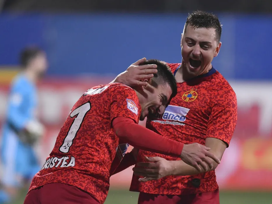 Iulian Lucian Cristea se bucura dupa un gol marcat alaturi de Andrei George Miron in meciul de fotbal dintre FCSB si Sepsi OSK Sfantu Gheorghe, contand pentru Liga 1 Casa Pariurilor, desfasurat fara spectatori pe Terenul principal al Centrului National de Fotbal din Mogosoaia, luni 21 decembrie 2020. © FOTO:Razvan Pasarica/SPORT PICTURES