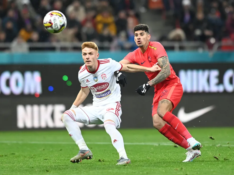 Andres Mihai Dumitrescu si Florinel Teodor Coman in meciul de fotbal dintre FCSB si Sepsi OSK Sfantu Gheorghe, contand pentru Superliga Superbet, desfasurat pe Arena Nationala din Bucuresti, duminica 12 martie 2023. © FOTO:Razvan Pasarica/SPORT PICTURES
