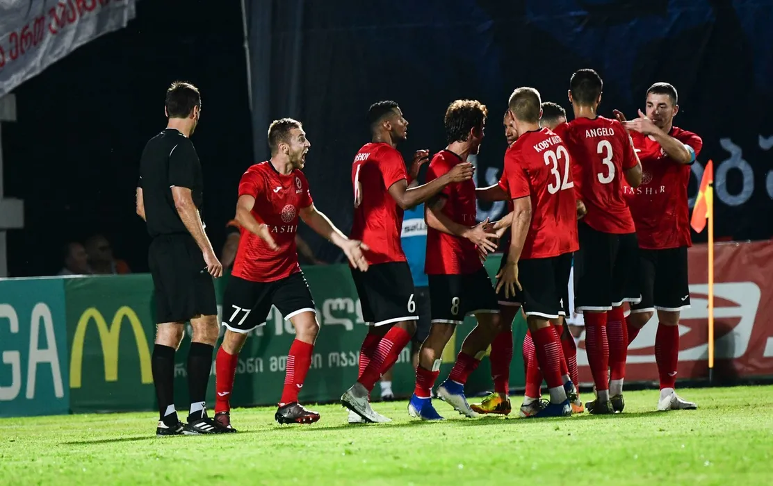 5975985 14.08.2019 FC Ararat-Armenia's players celebrate a goal during a Qualification Europa League soccer match between Saburtalo Tbilisi and FC Ararat-Armenia, in Tbilisi, Georgia.,Image: 465360086, License: Rights-managed, Restrictions: Editors' note: THIS IMAGE IS PROVIDED BY RUSSIAN STATE-OWNED AGENCY SPUTNIK., Model Release: no, Credit line: Profimedia