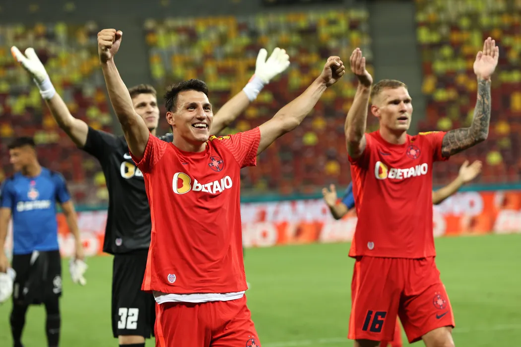Jucatorii de la FCSB isi manifesta bucuria la finalul partidei cu Saburtalo Tbilisi, partida retur din turul doi preliminar al UEFA Conference League, joi, 28 iulie 2022, pe Arena Nationala din Bucuresti. GEORGE FLUSTER / MEDIAFAX FOTO