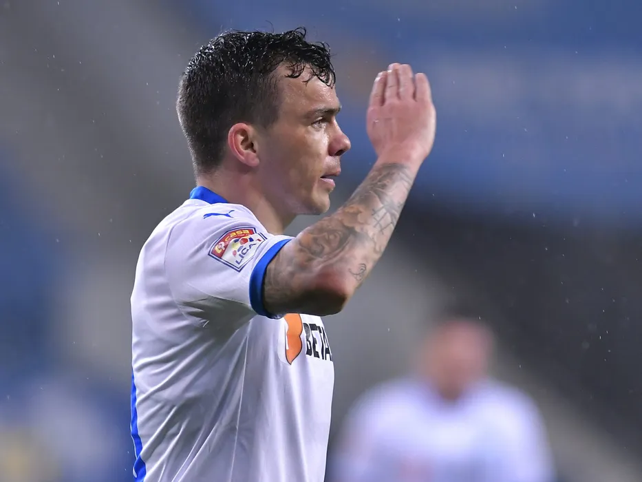 Dan Nicolae Nistor se bucura dupa un gol marcat in meciul de fotbal dintre Universitatea Craiova si UTA Arad, contand pentru Liga 1 Casa Pariurilor, desfasurat fara spectatori pe Stadionul Ion Oblemenco din Craiova, marti 16 martie 2021. © FOTO:Razvan Pasarica/SPORT PICTURES