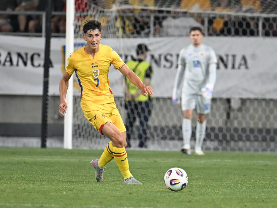 Ianis Tarbă in meciul de fotbal dintre Olanda U19 si Romania U19, contand pentru Campionatul European U19, desfasurat pe Stadionul Giulesti din Bucuresti, luni 23 iunie 2025. © FOTO:Razvan Pasarica/SPORT PICTURES