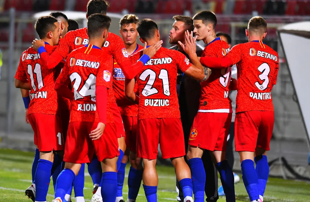 Bucurie stelista cui Olimpiu Vasile Morutan, Ovidiu Ioan Perianu, Mihai Pintilii si Dennis Man in meciul de fotbal dintre FCSB si FC Arges, contand pentru Liga 1 Casa Pariurilor, desfasurat fara spectatori pe Stadionul Marin Anastasovici din Giurgiu, duminica 20 septembrie 2020. © FOTO:Razvan Pasarica/SPORT PICTURES
