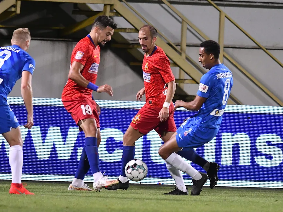 Adrian Tabarcea Petre, David Caiado si Jhon Edison Mosquera Rebolledo in meciul de fotbal dintre FCSB si Slovan Liberec, contand pentru Liga Europa, desfasurat fara spectatori pe Stadionul Marin Anastasovici din Giurgiu, miercuri 24 septembrie 2020. © FOTO:Razvan Pasarica/SPORT PICTURES