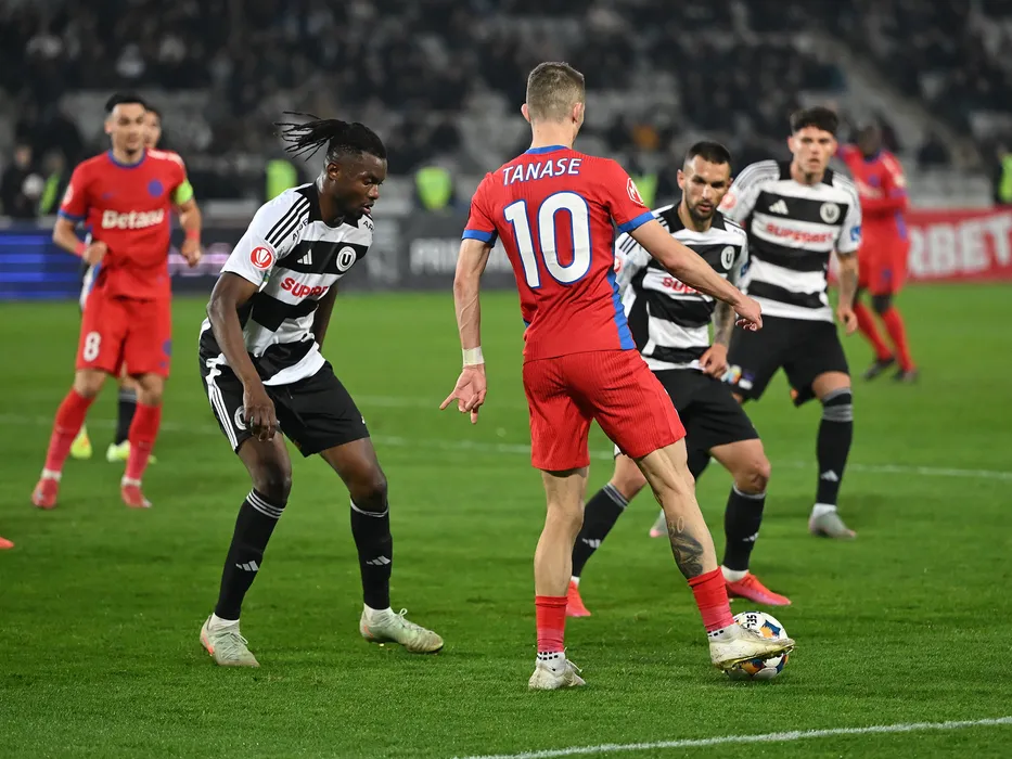 Jonathan Cisse si Florin Lucian Tănase în meciul de fotbal dintre Universitatea Cluj si FCSB, contând pentru Superliga Superbet, desfășurat pe Cluj Arena din Cluj Napoca, sambata 1 noiembrie 2025. © FOTO:Răzvan Pasarica/SPORT PICTURES