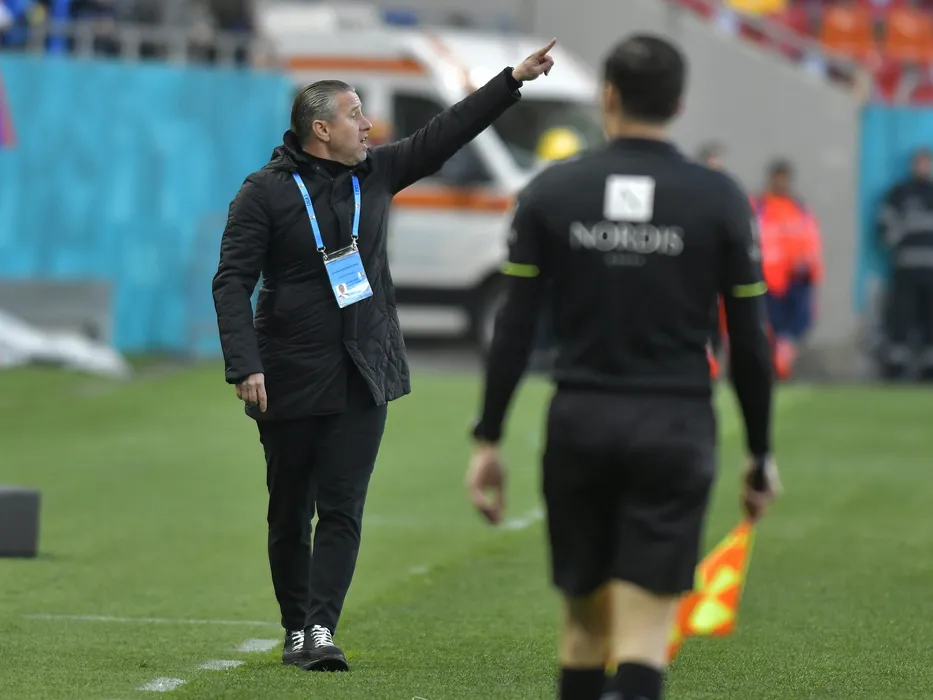 Laurentiu Aurelian Reghecampf reactioneaza in meciul de fotbal dintre FCSB si Universitatea Craiova, contand pentru Play-off-ul Ligii 1 Casa Pariurilor, desfasurat pe Arena Nationala din Bucuresti, duminica 3 aprilie 2022. © FOTO:Razvan Pasarica/SPORT PICTURES