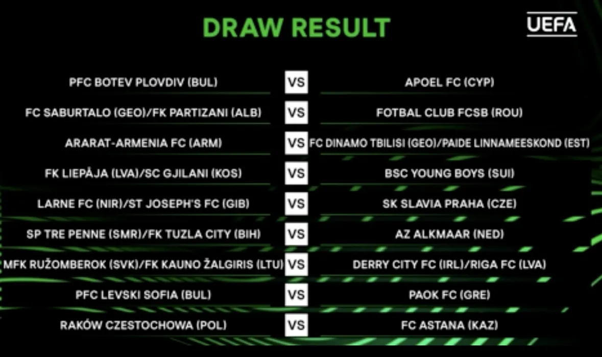FCSB, Universitatea Craiova și Sepsi și-au aflat adversarele din turul 2 al UEFA Conference League! Trupa din Bănie revine în țara unde a suferit o umilință în sezonul trecut, echipa lui Toni Petrea are parte de un oponent facil