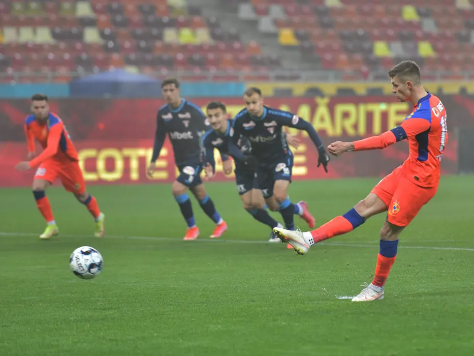 Florin Lucian Tanase marcheaza un gol din penalty in meciul de fotbal dintre FCSB si UTA Arad, contand pentru Liga 1 Casa Pariurilor, desfasurat pe Arena Nationala din Bucuresti, duminica 5 decembrie 2021. © FOTO:Razvan Pasarica/SPORT PICTURES