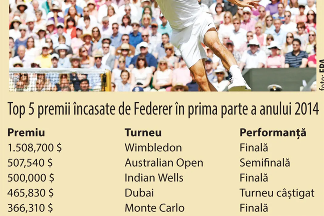 Federer, 4 milioane de dolari în primele șase luni din 2014