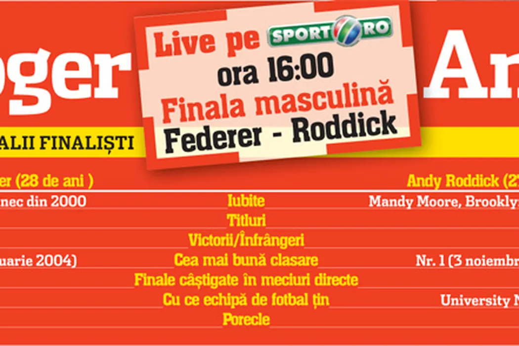 Federer – Roddick,** live pe Sport.ro, de la 16:00