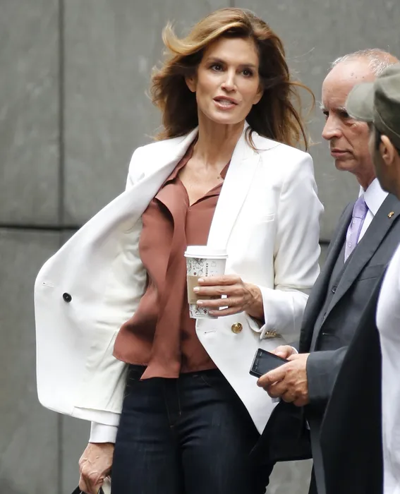 Cindy Crawford attend sa voiture à la sortie de son hôtel à New York le 30 septembre 2015. Model Cindy Crawford is waiting for her car outside The Mandarin Hotel in New York, NY on September 30, 2015.