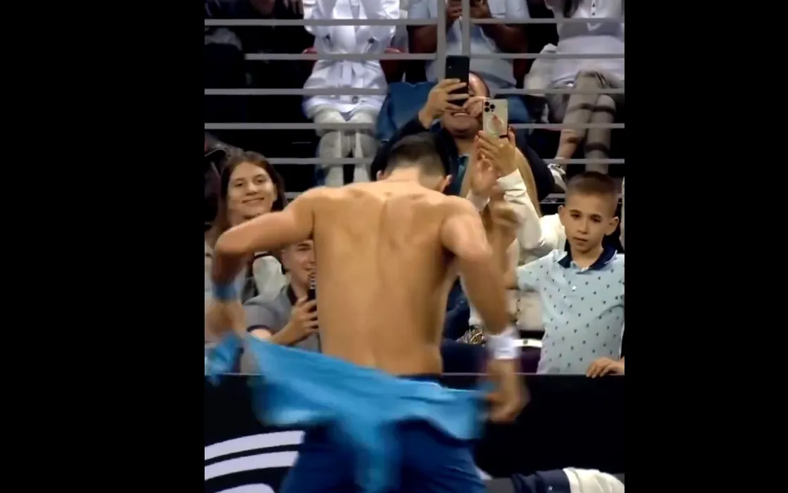 Femeile din primele rânduri au luat-o razna când l-au văzut pe Novak Djokovic dezbrăcat. Au scos telefoanele și l-au filmat pe sârb în timpul unui număr de striptease, pe teren, iar bulgarul Grigor Dimitrov a reacționat pe măsură
