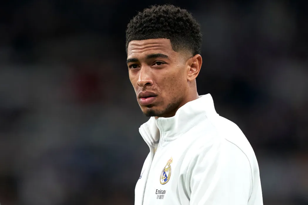 MADRID, SPAIN - JANUARY 03: Jude Bellingham of Real Madrid looks on prior to the LaLiga EA Sports match between Real Madrid CF and RCD Mallorca at Estadio Santiago Bernabeu on January 03, 2024 in Madrid, Spain. (Photo by Mateo Villalba/Getty Images)