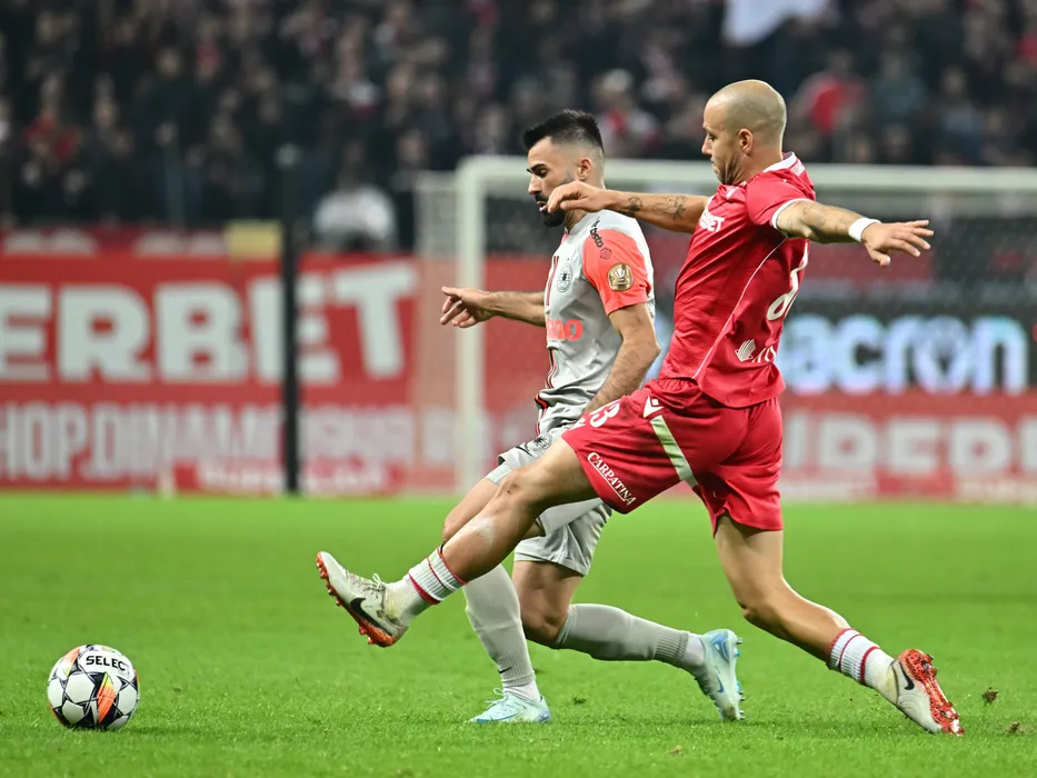 Valentin Crețu si Patrick Haakon Olsen in meciul de fotbal dintre Dinamo Bucuresti si FCSB, contand pentru Superliga Superbet, desfasurat pe Arena Nationala din Bucuresti, duminica 20 octombrie 2024. © FOTO:Razvan Pasarica/SPORT PICTURES