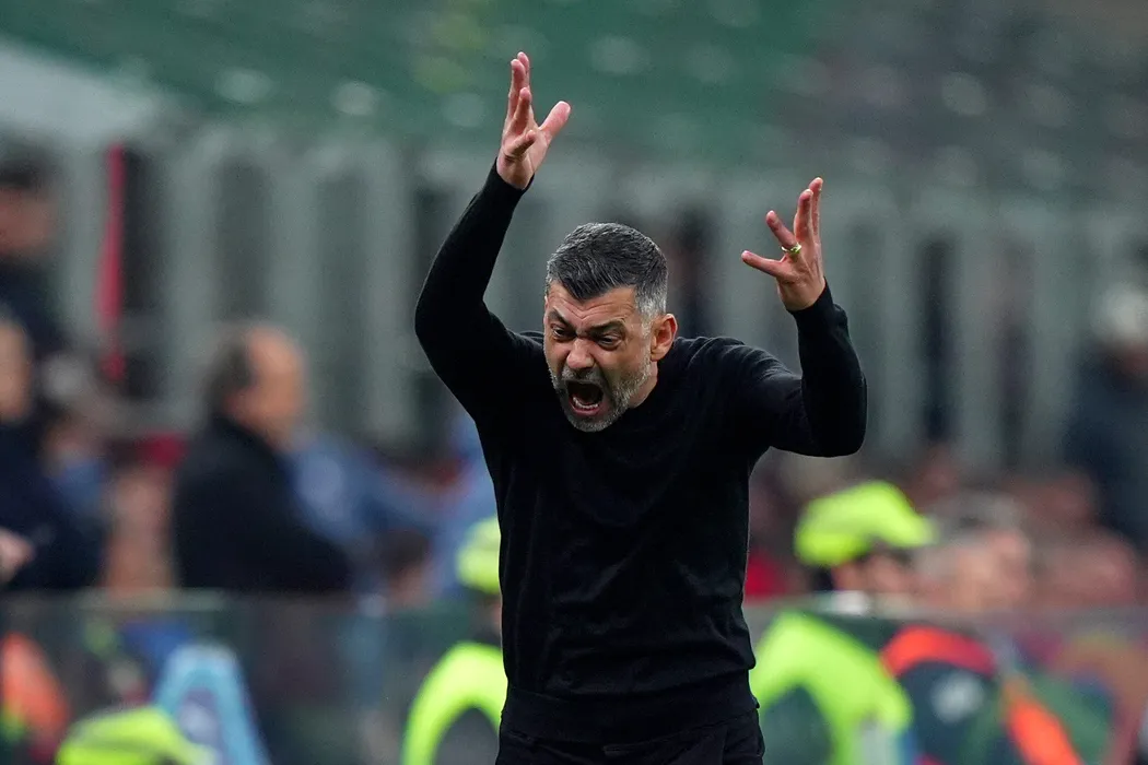 FILED - 02 February 2025, Italy, Milan: AC Milan head coach Sergio Conceicao gestures on the touchline during the Italian Serie A soccer match between AC Milan and Inter Milan at San Siro Stadium Photo: -/LaPresse via ZUMA Press/dpa