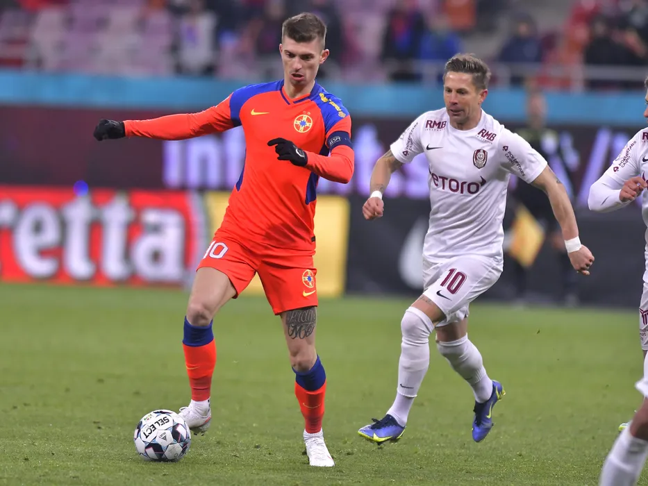Florin Lucian Tanase si Ciprian Ioan Deac in meciul de fotbal dintre FCSB si CFR Cluj, contand pentru Liga 1 Casa Pariurilor, desfasurat pe Arena Nationala din Bucuresti, duminica 23 ianuarie 2022. © FOTO:Razvan Pasarica/SPORT PICTURES