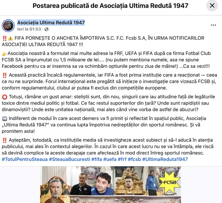 SURSA FOTO: CAPTURĂ facebook.com/AsociatiaUltimaReduta1947