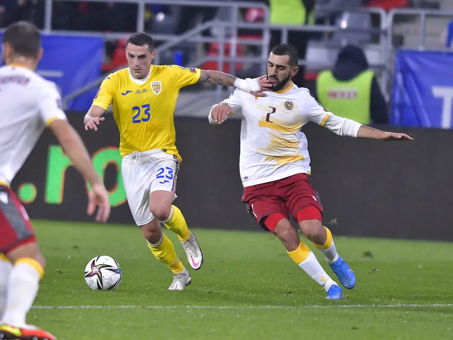 Nicolae Stanciu si Davit Terteryan in meciul de fotbal dintre Romania si Armenia, din cadrul Preliminariilor Campionatului Mondial 2022, desfasurat pe Stadionul Steaua din Bucuresti, luni 11 octombrie 2021. © FOTO:Razvan Pasarica/SPORT PICTURES