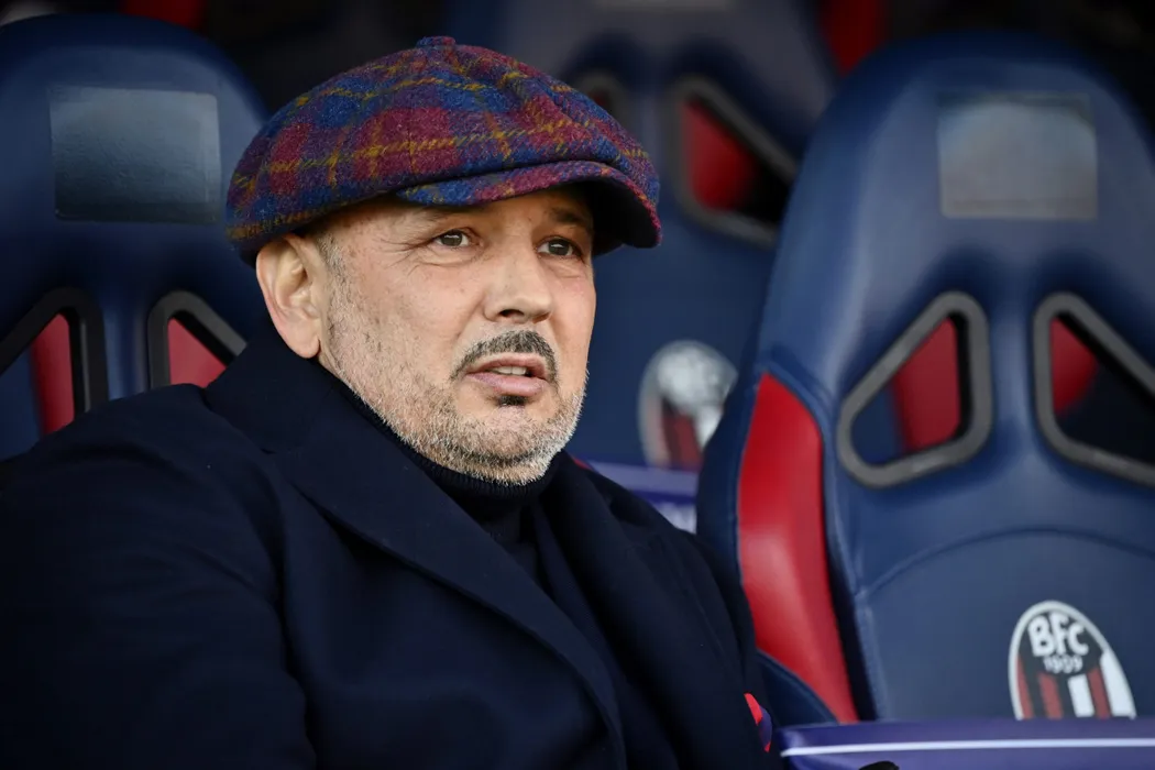 Bologna coach Sinisa Mihajlovic waits for the start of the Serie A soccer match between Bologna and Verona at the Renato Dall'Ara stadium, in Bologna, Italy, Saturday, Jan. 16, 2021. (Massimo Paolone /LaPresse via AP)