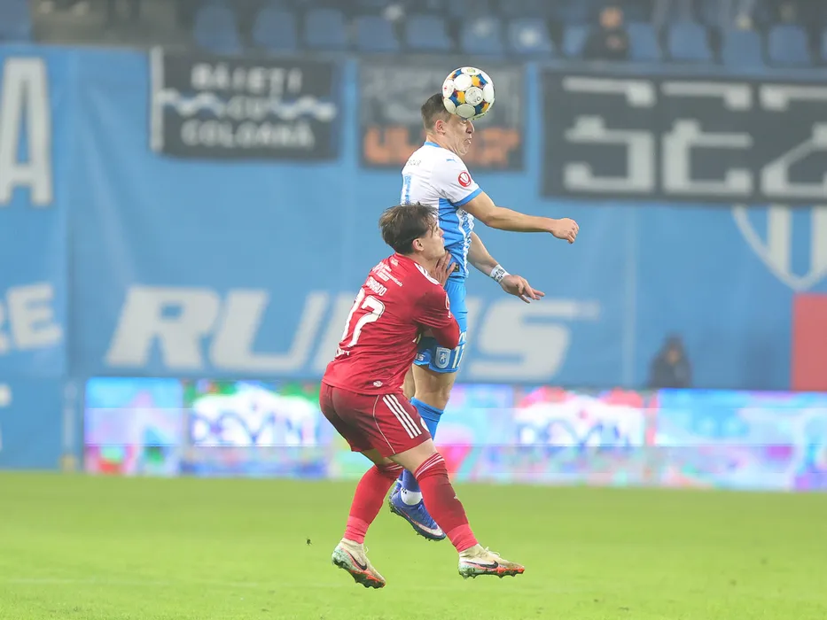 Carlos Andrei Mora Montoya si Holz Conrado Buchanelli in meciul de fotbal dintre Universitatea Craiova si SC Otelul Galati, contand pentru Superliga Superbet, desfasurat pe Stadionul Ion Oblemenco din Craiova, joi 5 februarie 2026. © FOTO:Sorin Pana/SPORT PICTURES