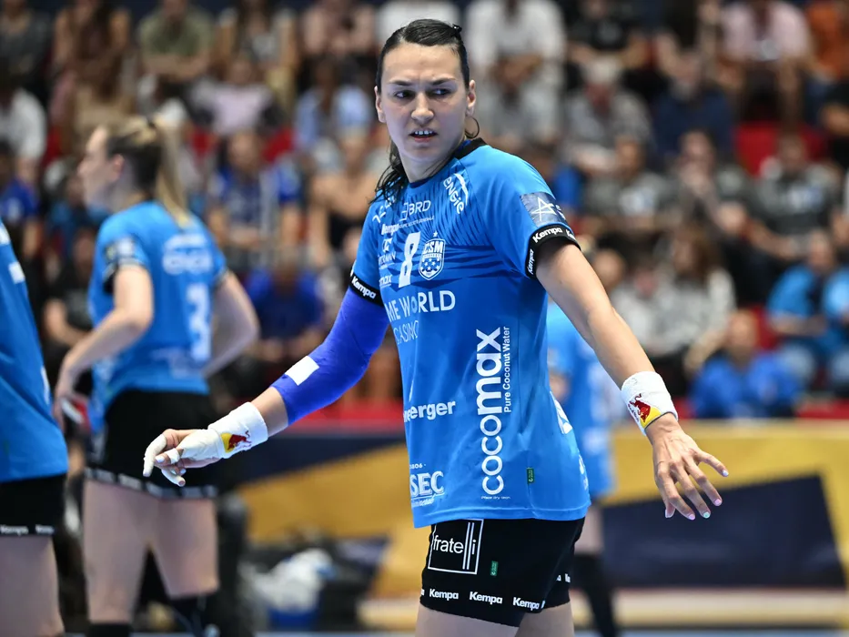 Cristina Georgiana Neagu reactioneaza in meciul de handbal feminin dintre CSM Bucuresti si Metz Handball, contand pentru Liga Campionilor, desfasurat in Sala Polivalenta-Ioan Kunst Ghermanescu din Bucuresti, duminica 28 aprilie 2024. © FOTO:Razvan Pasarica/SPORT PICTURES