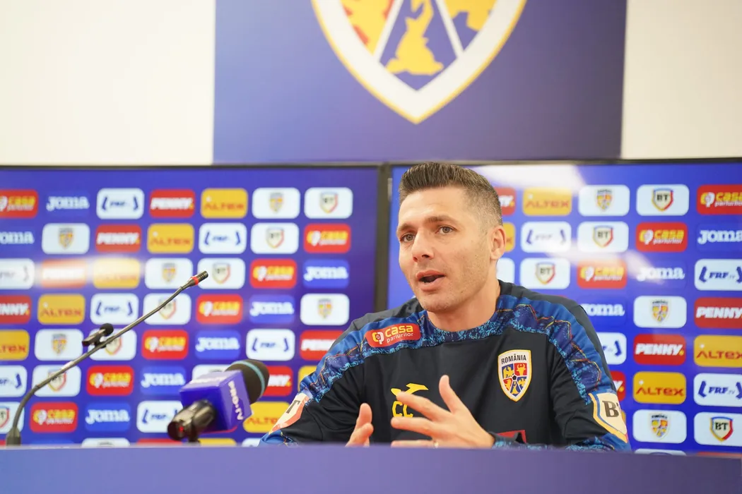 Costin Curelea la conferinta de presa de dinaintea meciului amical impotriva Serbiei U21, desfasurata la Stadionul Francisc Neuman din Arad, joi 9 octombrie 2025. © FOTO:Alexandra Fechete/SPORT PICTURES