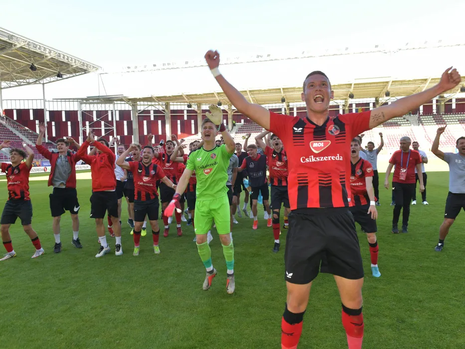 Fotbalistii ciucani printre care Mark Karacsony si Daniel Veregut se bucura dupa victoria din meciul de fotbal dintre AFK Csikszereda Miercurea Ciuc U19 si Sepsi OSK Sfantu Gheorghe U19, finala Cupei Elitelor U19, desfasurat pe Stadionul Rapid din Bucuresti, joi 19 mai 2022. © FOTO:Razvan Pasarica/SPORT PICTURES