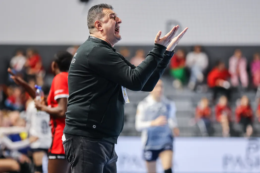 Florentin Constantin Pera reacționează în meciul de handbal feminin dintre CS Gloria 2018 Bistrița Năsăud și HC Dunărea Brăila, contând pentru Liga Florilor MOL, desfășurat în Sala Polivalentă Teraplast Arena din Bistrița, vineri 1 noiembrie 2024. © FOTO: Sorin PANĂ/SPORT PICTURES
