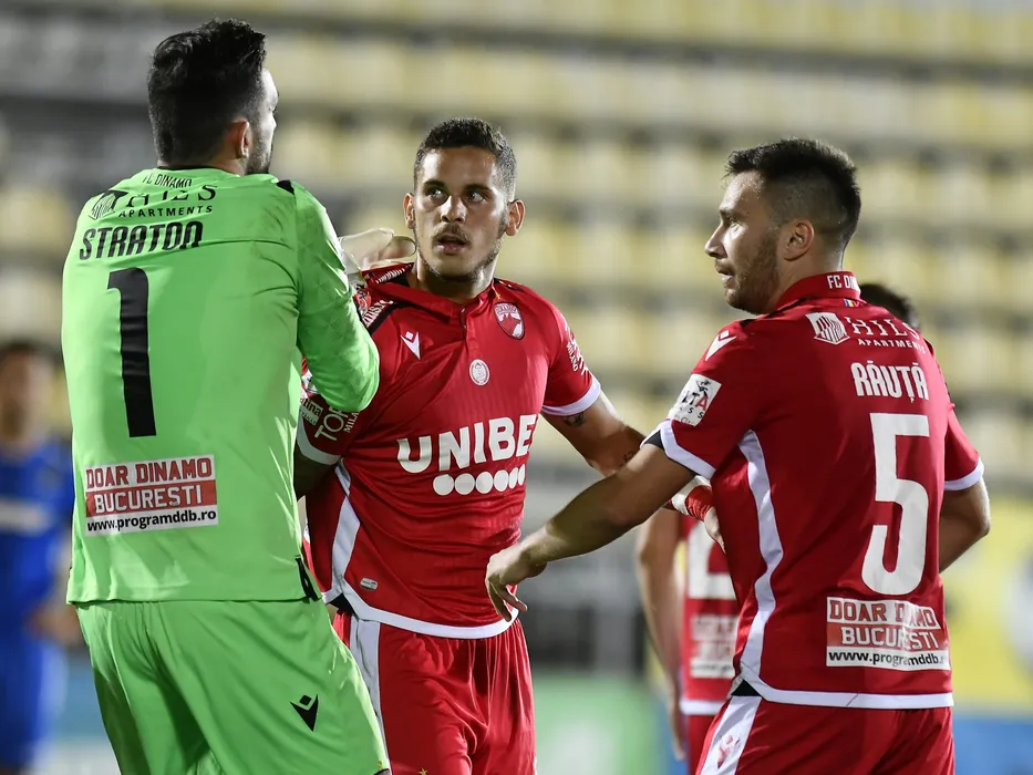 Catalin Straton, Kristian Kostrna si Alexandru Ilie Rauta in meciul de fotbal dintre FC Voluntari si Dinamo Bucuresti, contand pentru play-out-ul Ligii 1 Casa Pariurilor, disputat fara spectatori pe Stadionul Anghel Iordanescu din Voluntari, duminica 2 august 2020.© FOTO:Razvan Pasarica/SPORT PICTURES