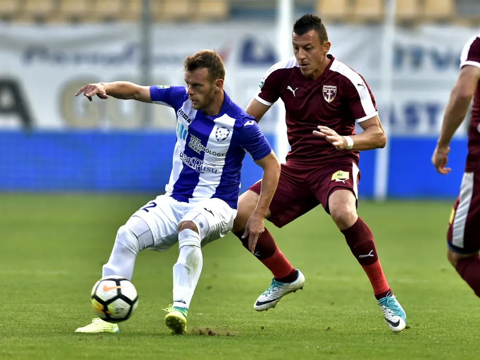Alexandru Munteanu si Florin Acsinte in meciul de fotbal dintre FC Voluntari si ACS Politehnica Timisoara, disputat in cadrul Ligii 1 Betano pe stadionul Ilie Oana din Ploiesti, marti 19 septembrie 2017. © FOTO Razvan Pasarica/SPORT PICTURES