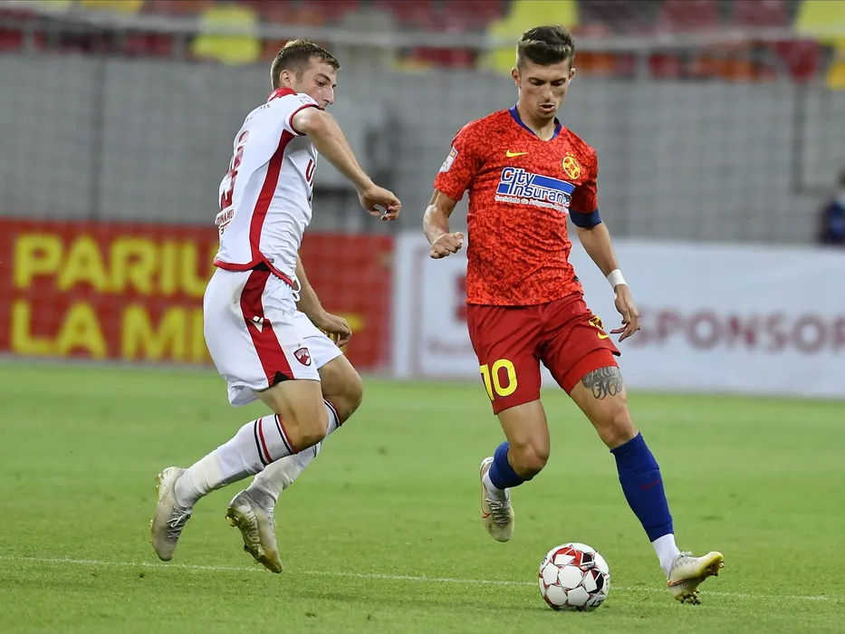 Daniel Iliuta Popa si Florin Tanase in meciul de fotbal dintre FCSB si Dinamo Bucuresti, contand pentru returul semifinalei Cupei Romaniei, disputat fara spectatori pe Arena Nationala din Bucuresti, miercuri 8 iulie 2020. © FOTO:Razvan Pasarica/SPORT PICTURES