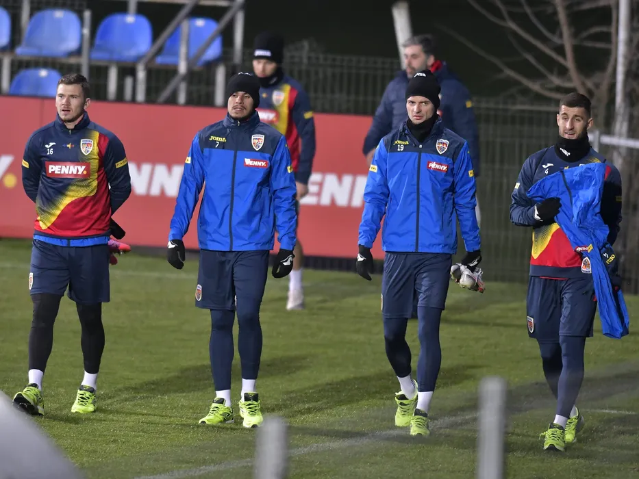 Fotbalistii nationalei Romaniei Florin Iacob, Florinel Coman, Florin Tanase si Ovidiu Popescu participa la antrenamentul oficial de dinaintea meciului impotriva Macedoniei de Nord din cadrul Preliminariilor Campionatului Mondial 2022, desfasurat la Centrul National de Fotbal de la Mogosoaia, miercuri 24 martie 2021. © FOTO:Razvan Pasarica/SPORT PICTURES
