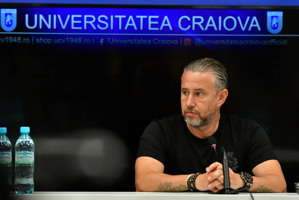 Laurentiu Reghecampf este prezentat oficial ca noul antrenor al echipei de fotbal Universitatea Craiova in cadrul unei conferinte de presa care a avut loc la stadionul Ion Oblemenco , marti 27 iulie 2021 . REMUS BADEA / MEDIAFAX FOTO